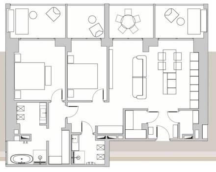 Мягкий свет. Благодаря панорамному остекленению в дневное время апартаменты не нуждаются в дополнительном освещении
