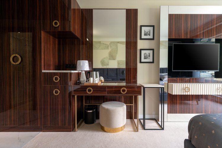 В проекте представлены номера площадью от 25 до 49 кв. метров. Сдаются они с мебелью в 5 цветовых решениях, панорамными окнами и высотой потолков 3 метра. Все номера имеют вид на море или горы.