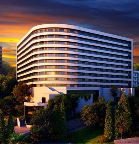 Гостиничный комплекс 5 звезд представляет собой 2 здания высотой в 10 этажей, возведенных по монолитной технологии строительства на территории 2,8 ГА. Фасады облицованы известняковыми плитами белого цвета и черным сланцем природного происхождения.