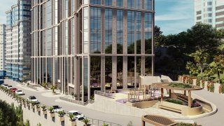 Концепция комплекса черпает вдохновение в самой природе побережья. Плавные, волнообразные линии фасадов и обилие панорамного остекления создают ощущение движения и света, органично вписывая здания в зеленый ландшафт сочинского холма.