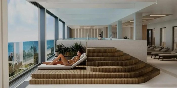 1)Спортивно-оздоровительный корпус с большим SPA-центром, бассейном и прямым видом на море.